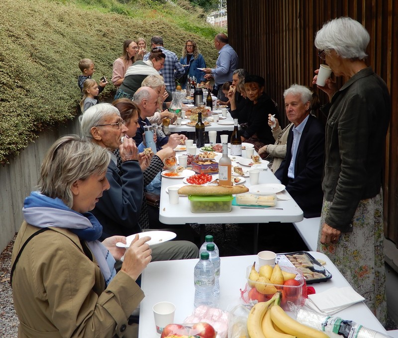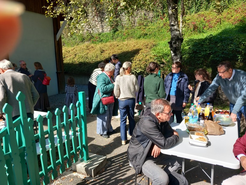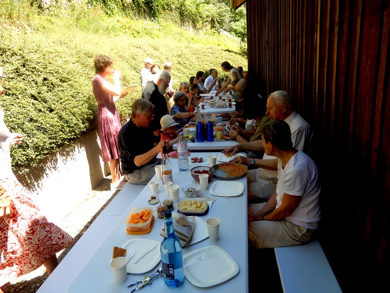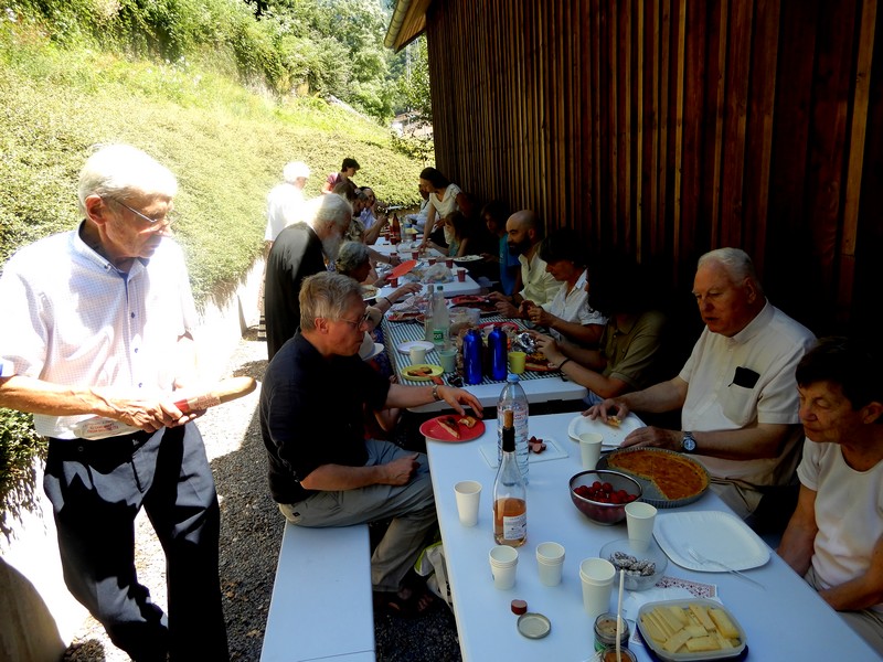 la communauté réunie pour des agapes réussies, beau temps, température clémente, ambiance fraternelle.