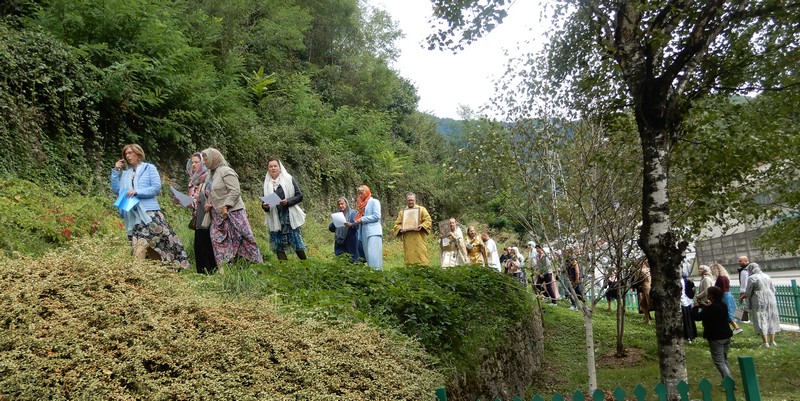 C’est autour du père Yannik responsable du camp de l’ACER(Action Chrétienne des Étudiants Russes) basé à Malleval en Vercors que la liturgie a eu lieu. Arrivés de Queige en Beaufortain non sans difficultés par les chemins forestiers, la Liturgie c'est déroulée à leur arrivée vers 12h.