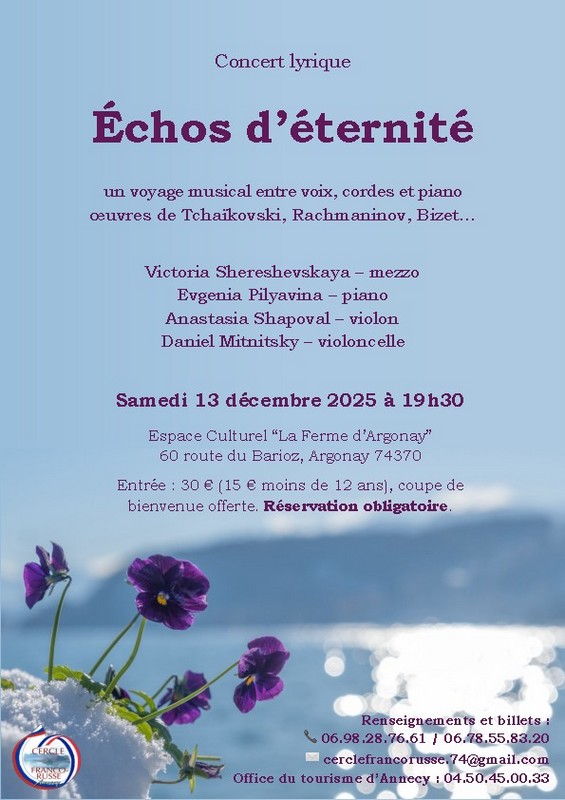 Тема : Cercle Franco-Russe d’Annecy – Лирический концерт "Отголоски вечности", 13 декабря 2025 в 19:30