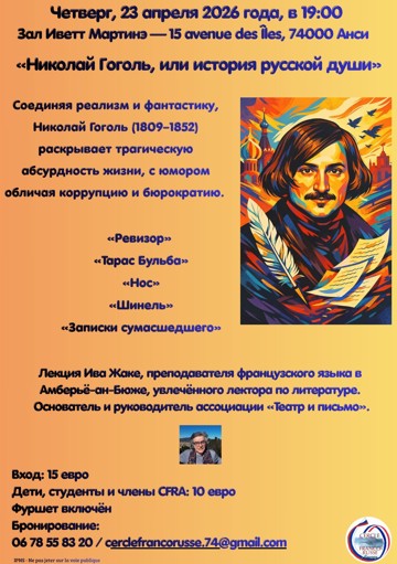 Мы будем рады видеть вас в четверг, 23 апреля 2026 года, в 19:00, в зале Иветт Мартине, по адресу: 15 avenue des Îles, 74000 Анси: