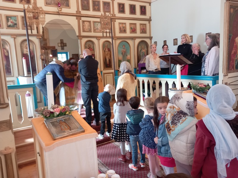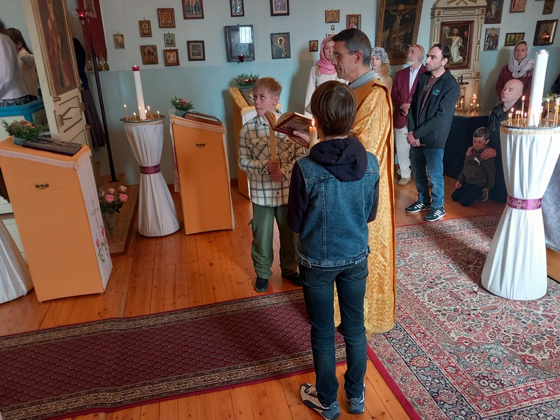 Le samedi 25 par la célébretaion de la liturguie, célébrée par le Père Silouane de la paroisse de Milan (Italie) et par le hiéromoine Joseph de Paris tous deux du patriacat de Moscou. La liturgie a réuni une cinquantaine de fidèles avec un coeur remarquable qui doivent être remercié ici pour leur participation.