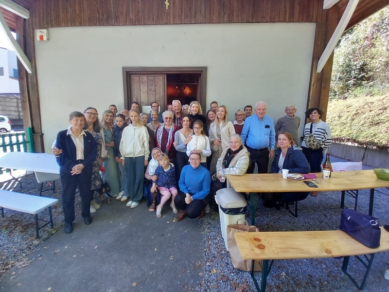 la communauté réunie pour des agapes réussies, beau temps, température clémente, ambiance fraternelle.