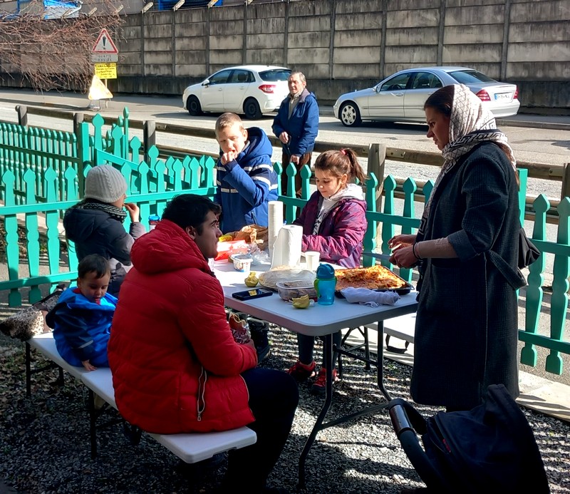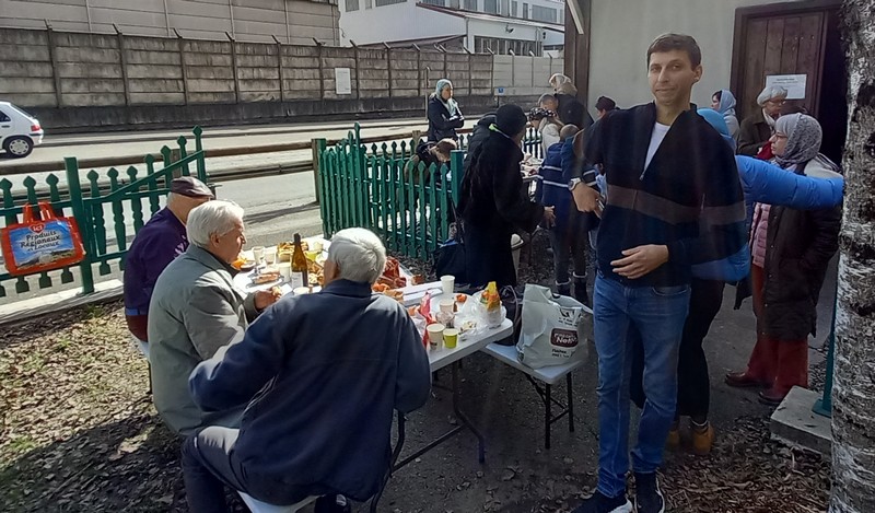 la communauté réunie pour des agapes réussies, beau temps, température clémente, ambiance fraternelle.